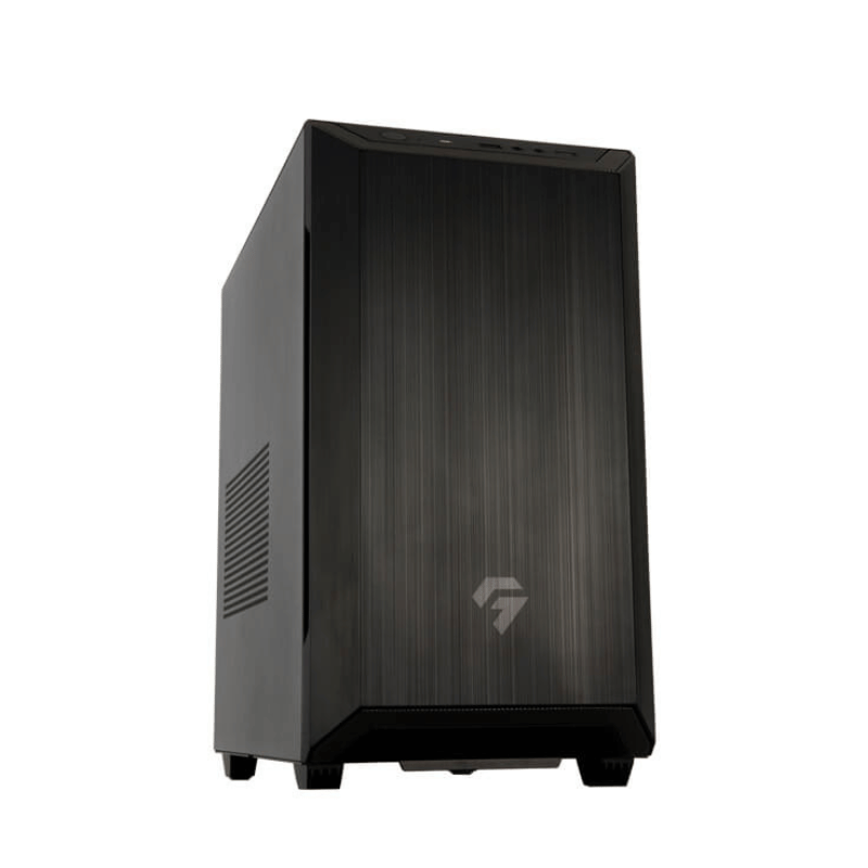 ケースデザインは、コンパクト仕様のミニタワーモデル。シンプルながら重厚感のあるスチールパネルで、効率的な冷却性、排熱性に優れています。